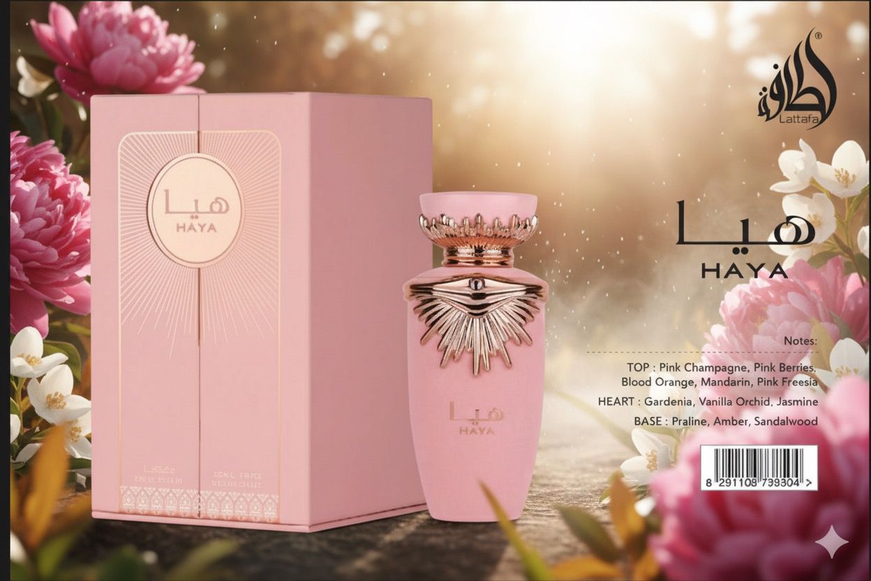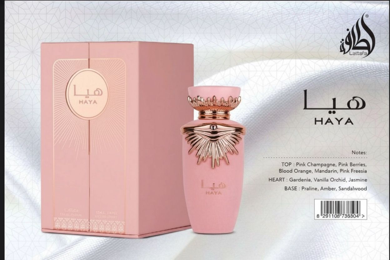 Découvrez HAYA, un parfum d’exception signé Lattafa, conçu pour la femme moderne, raffinée et irrésistiblement confiante. Présenté dans un flacon rose poudré orné de détails dorés luxueux, HAYA incarne la délicatesse, la sensualité et la sophistication.